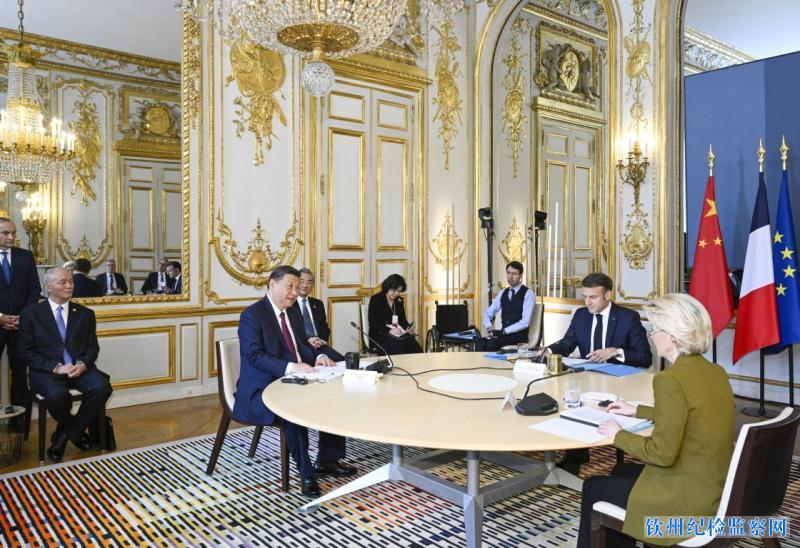 当地时间5月6日上午,国家主席习近平应邀在巴黎爱丽舍宫同法国总统马克龙、欧盟委员会主席冯德莱恩举行中法欧领导人三方会晤。